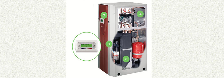 Powerful, safe and reliable.The ‘heart’ of the heat pump is the Copeland scroll processor, providing high levels of efficiency, reliability and low noise operation. Always in control.The WPM heat pump manager monitors, regulates and controls the entire system to ensure optimum performance and efficiency for heating, domestic water and where applicable, cooling. Evaporator.Large surface area plate heat exchangers allow for efficient transfer of heat from the environment. They are compact, efficient and reliable. Insulated casing.Sound insulation around the insides of the heat pump casing reduce operating noise to a minimum. |